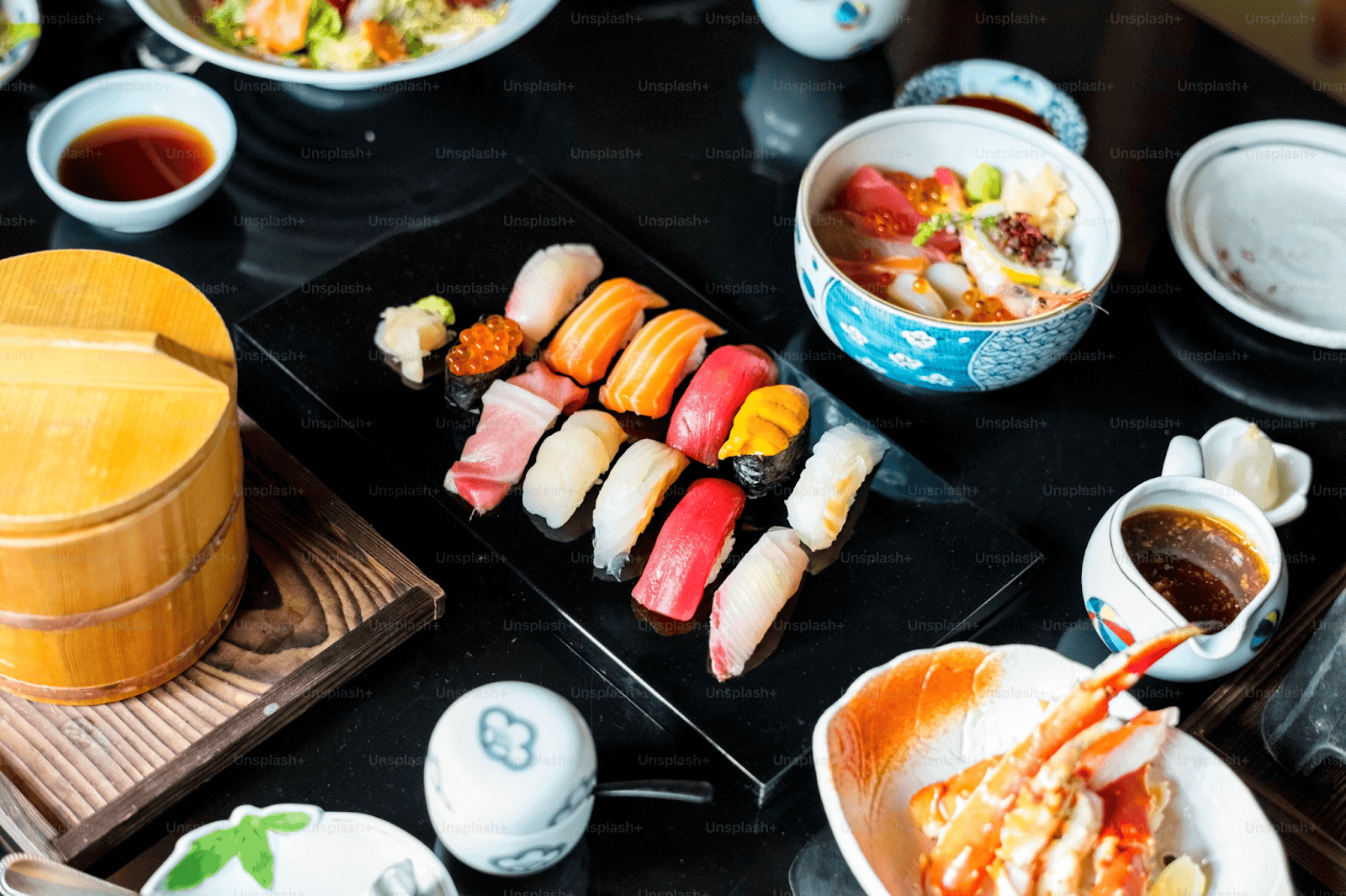 Meanwhile, the artistry of sushi presents fresh ingredients, skillfully rolled into neat, satisfying pieces.